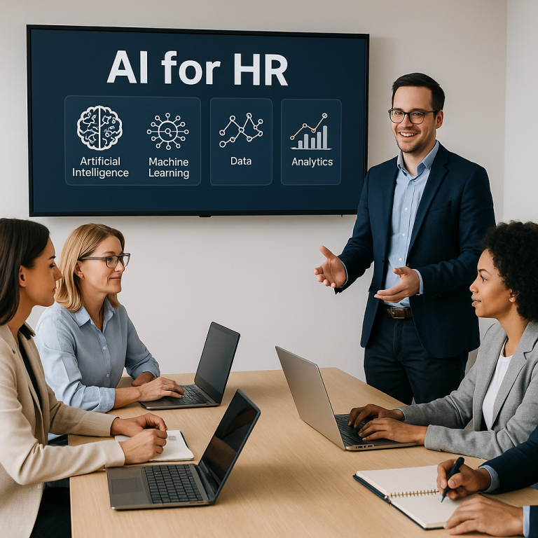 A half-day, online, interactive course designed for UK HR leaders. Gain the confidence, frameworks, and tools to apply AI in HR—ethically, strategically, and